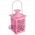 Felinar din tabla zincata vopsita in culoarea roz, destinata atat folosirii ca lampadar cu lumanari pastile sau pentru decor.