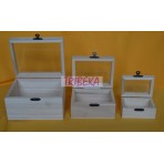 CUTIE / CUFAR LEMN BLANK - SET 3 CUTII GEAM STICLA